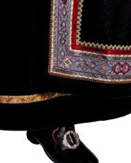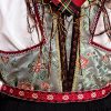 Livet er i silkedamask dekorert med ulike bånd. Stakken er i mørkeblå eller sort ull med rynker i livet og pyntet med bånd nede. Forkle er i ull eller silke med pyntebånd og et vevd belte. Mulighetene for variasjon er mange.